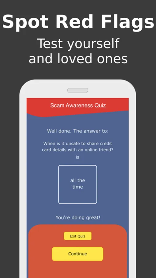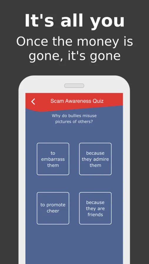 This app will help encourage the right online behaviours and to develop an instinct for identifying scammer activity.