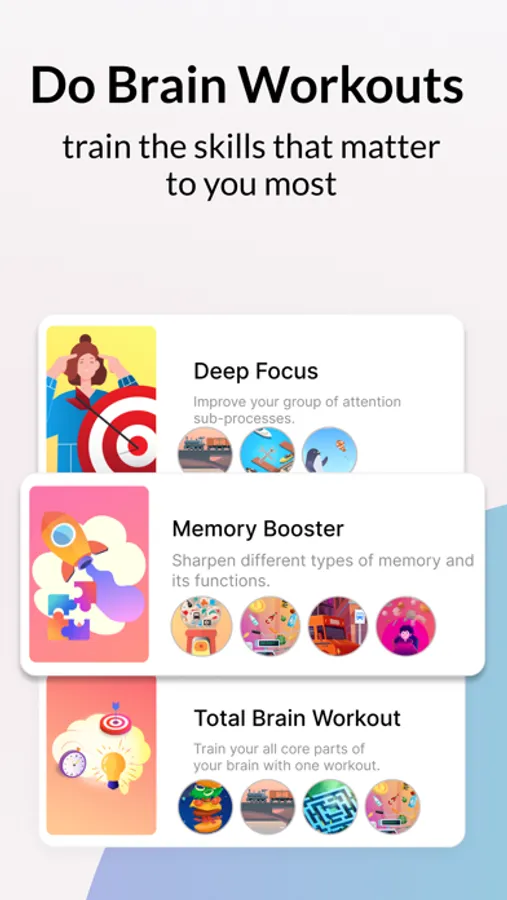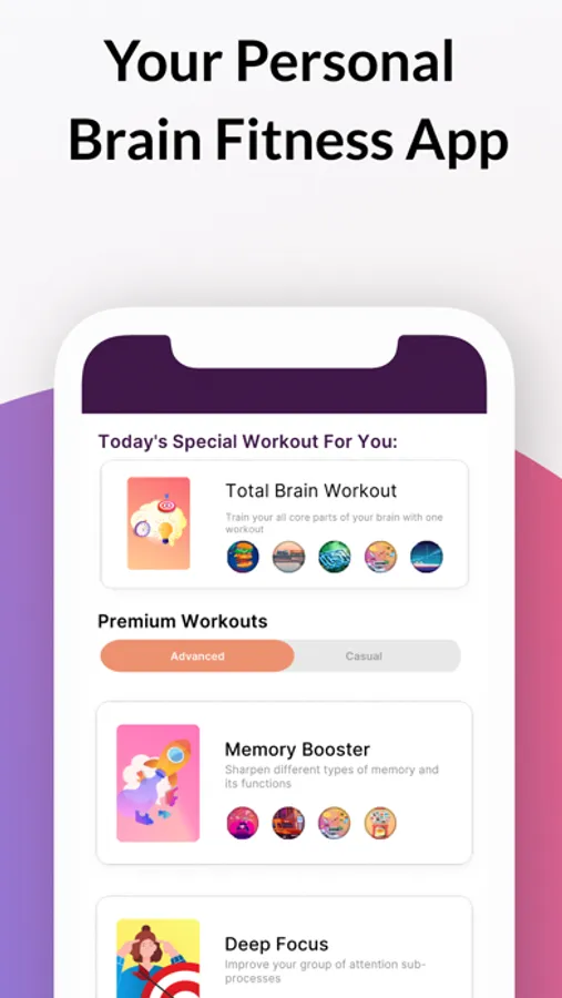 • Advanced workout mode to train the cognitive skills that matter to you most