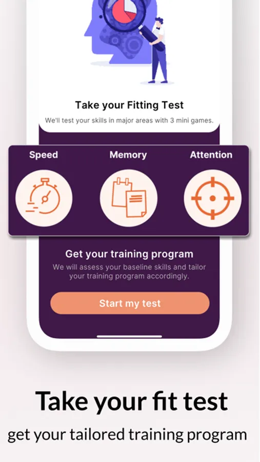 Firstly, we ask you to complete the free personalization and fitting test to prepare the tailored brain fitness program in line with your interests and development needs. As you play specially designed games and do brain workouts, we measure your core cognitive functions regularly, identify your weaknesses and strengths, and keep offering the most suitable brain exercises that fit your goal and needs best.