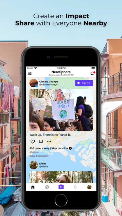 NearSphere is a location-based social media app that connects you with people nearby.