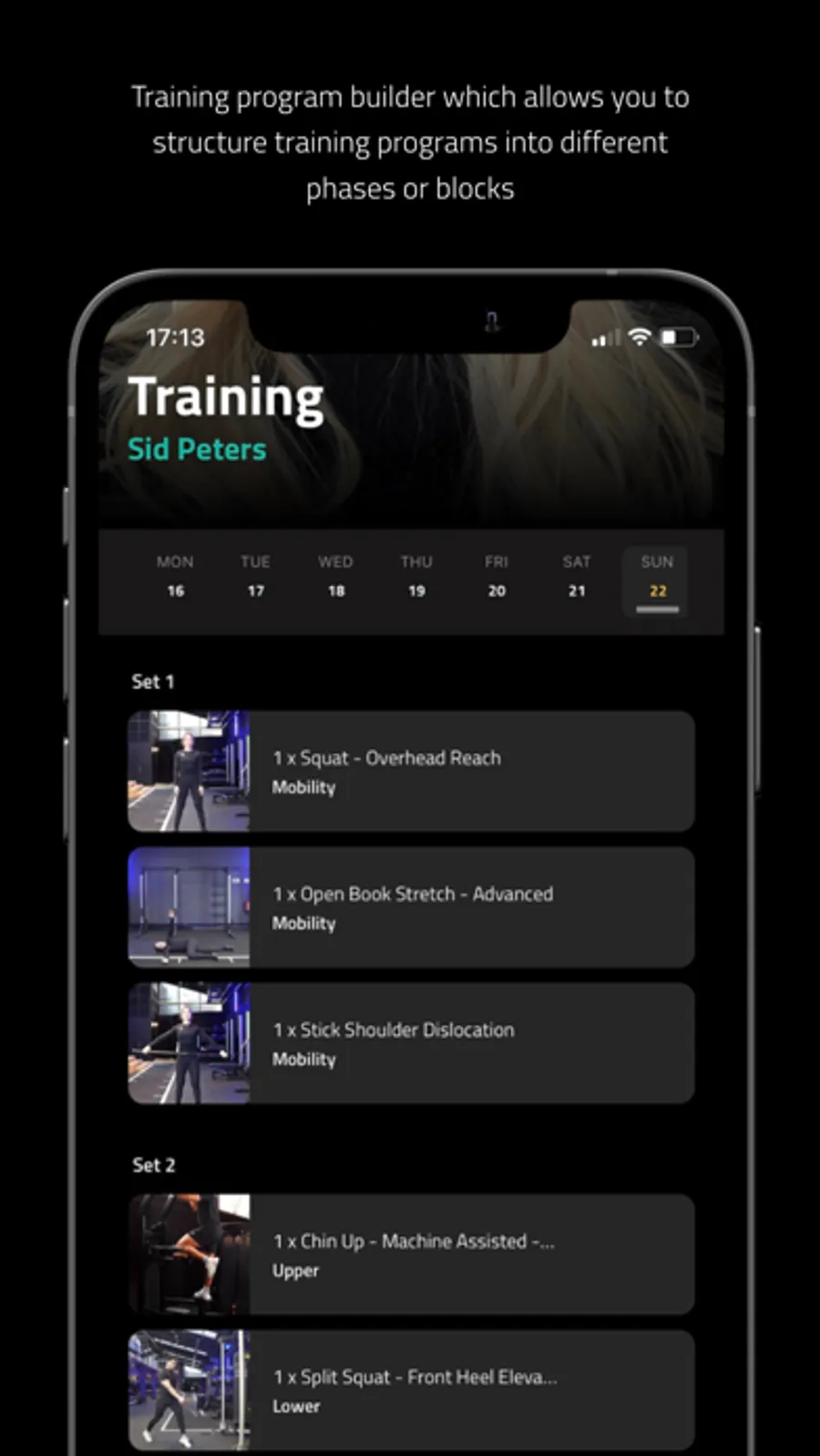 The application can be downloaded onto the personal training client’s phone with which the client can log training sessions and nutrition, fill out intake forms and feedback questionnaires, upload progress pictures, analyze progress with regards to training performance as well as body composition and communicate with a trainer in order to improve the clients’ training experience.
