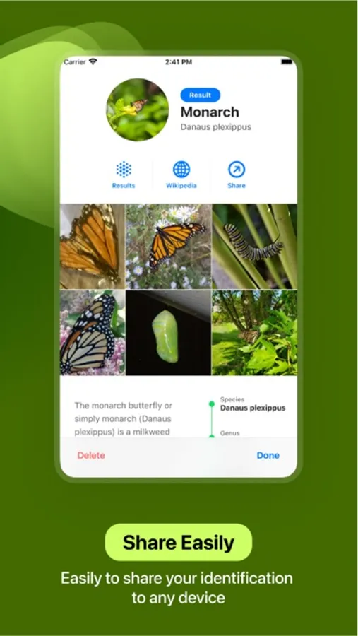 Keep track of your identifications with a beautiful collection space. You can share any of your insect id with your friends.