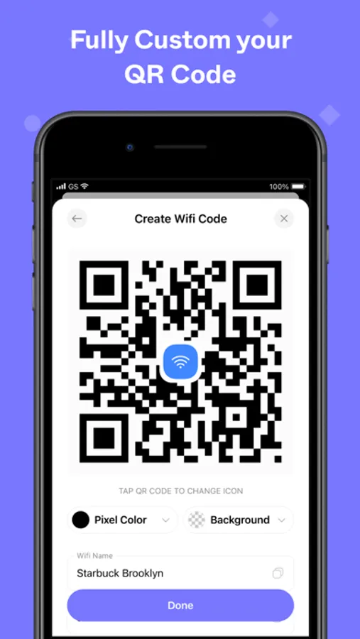 - Create your own QR code with your logo, giving you a unique code that represents your brand or business.