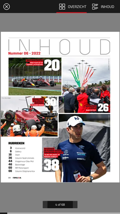 Overal toegang tot FORMULE 1, al meer dan 25 jaar hét racemagazine van Nederland. F1, FORMULA ONE, FORMULA 1, FIA FORMULA ONE WORLD CHAMPIONSHIP, GRAND PRIX and all other official trade marks related to the FIA Formula One World Championship are trade marks belonging to Formula One Licensing BV, a Formula One group company.