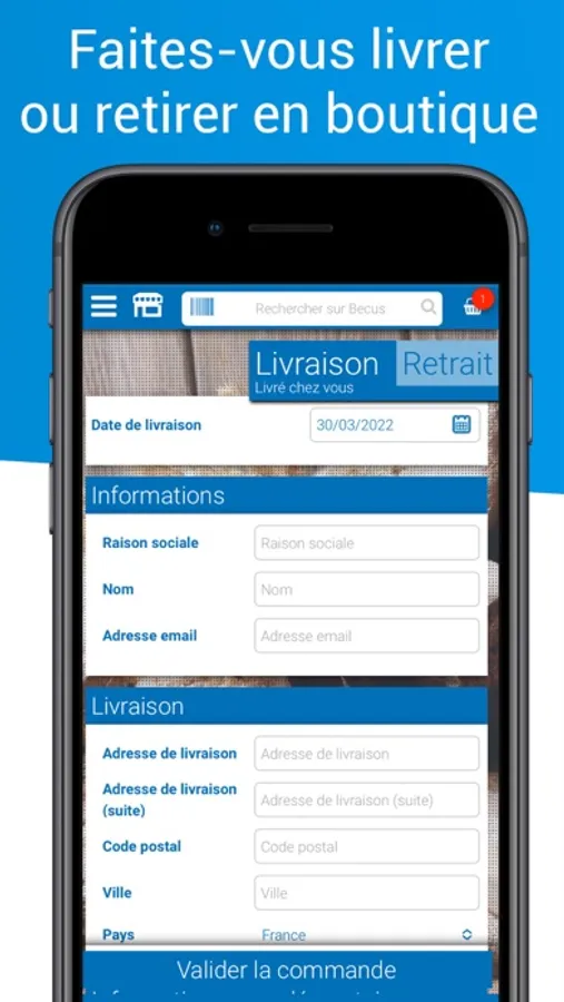 - Retrait au dépôt de Grigny 1h après la commande aux jours et heures d’ouverture