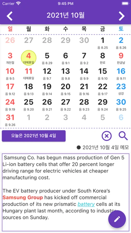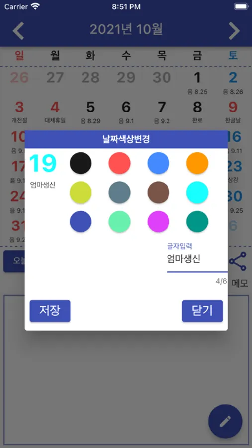 달력에 메모를 저장할수 있습니다.