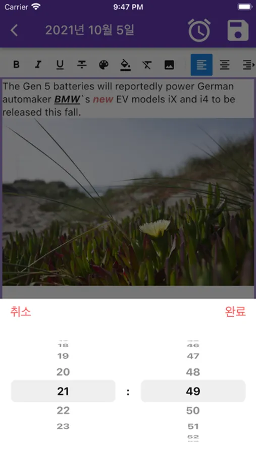 날짜를 길게 눌러 메모를 입력합니다.