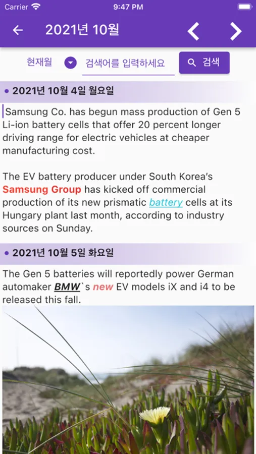 한달치 메모를 한눈에 볼수 있고 전체 메모를 검색할 수 있습니다.