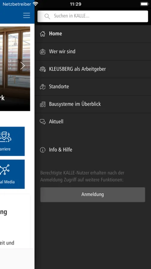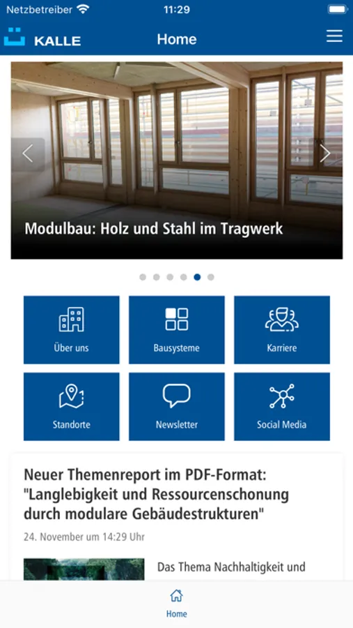 KALLE ist die Kommunikations-App von KLEUSBERG. Sie bietet Mitarbeiter*Innen, Partner*Innen, Kund*Innen und Interessent*Innen ein breites Spektrum an Informationen rum um das Unternehmen, die Leistungen und Produkte sowie Karriere- und Ausbildungsmöglichkeiten. Durch regelmäßige News und Wissenswertes aus den Bereichen Baukonstruktion, Architektur sowie Dienstleistung – rund ums modulare Bauen und Räume schaffen – bleiben Sie immer auf dem Laufenden. Folgen Sie unserem Social-Feed und werden Sie Teil des KLEUSBERG Netzwerks.