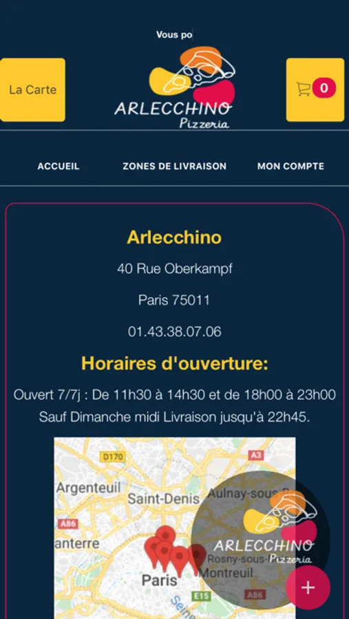L'application Arlecchino vous permet de commander en ligne ou par téléphone via votre application. Vous pouvez consulter notre carte et choisir vos produits.