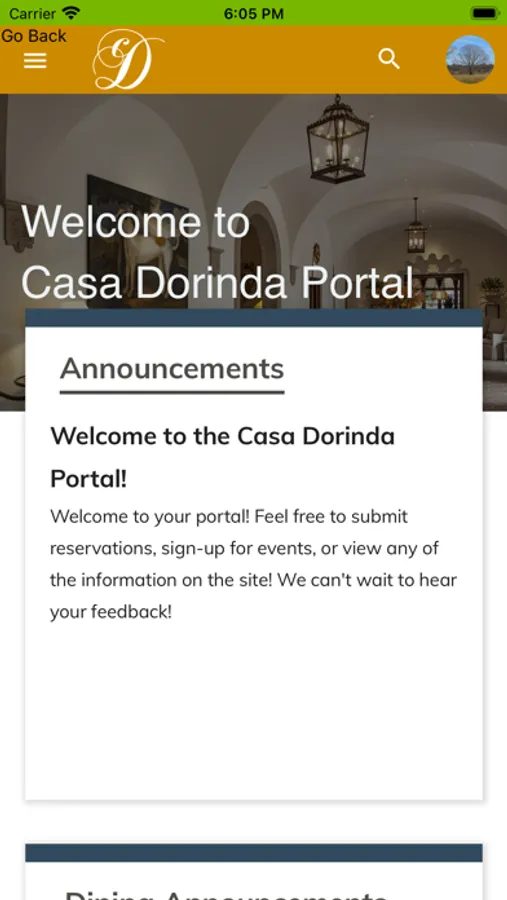 The Casa Dorinda resident communication center mobile application has user functionality to register for events, digitally submit forms, view community documents, view resident and staff directories, and engage with other residents of your community.