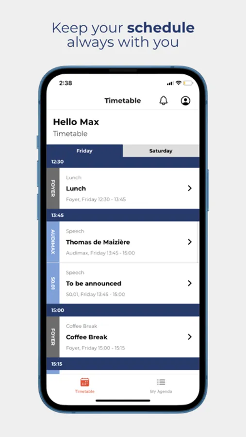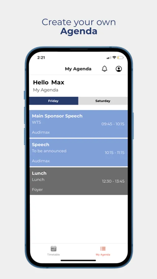 Disclaimer: Time table and agenda in the screenshots do not display final event information.