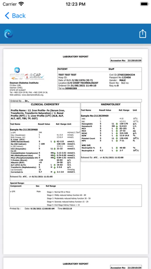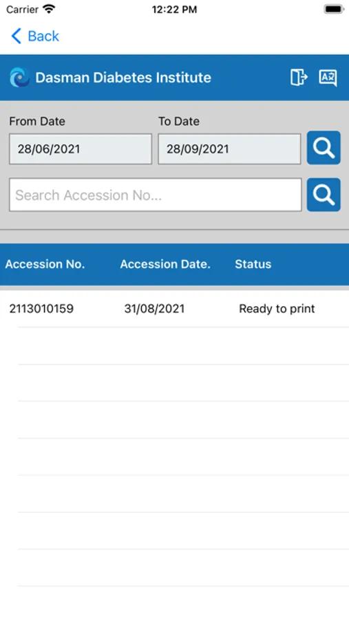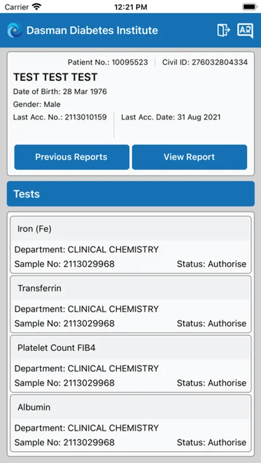 والهدف من هذا النظام هو السماح لمراجعي حسابات معهد دسمان للسكري بالحصول على نتائجهم المختبرية بشكل روتيني من خلال بوابة معهد دسمان للسكري الإلكترونية الآمنة والفورية، باستثناء بعض التحليلات الحساسة.