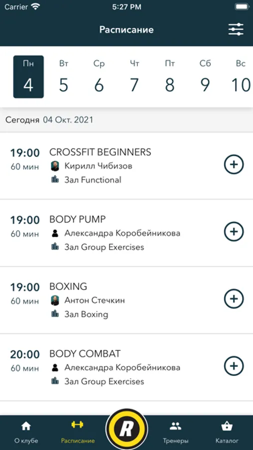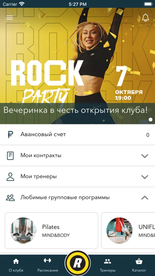 Мобильное приложение для членов клуба ROCKOUT Gym.
