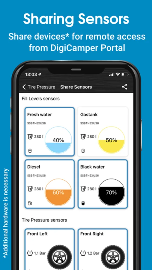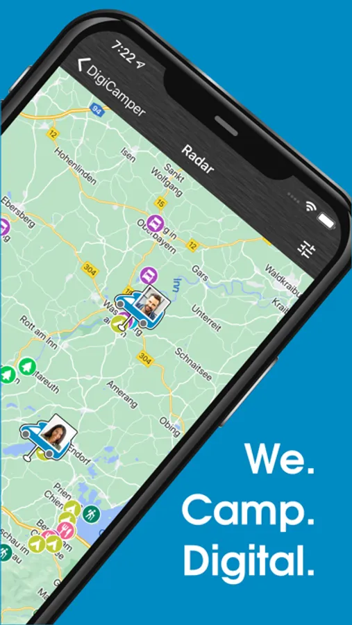 DigiCamper.com is a community for drivers of motorhomes and caravans, here it is all about digitalization in the camper. Furthermore, supported devices (e.g. SuperSense level sensors) can be connected to the app and the data transferred to the DigiCamper website. With DigiCamper Radar you can find the best places and see other DigiCamper on the map with the live function.