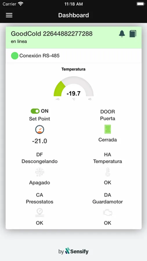 Descarga la app, ingresa con tu nombre de usuario y contraseña y comienza a controlar el funcionamiento de tu equipo compacto Good Cold en cualquier momento y desde cualquier lugar.