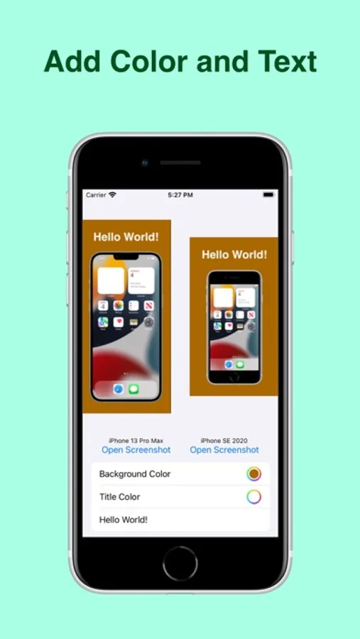 - Preview of both Device Sizes. (13 Pro Max and SE 2020)