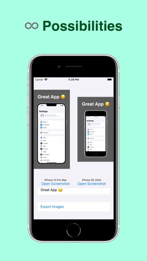 Please only use 13 Pro Max Screenshots on the left Upload Button and SE 2020 Screenshots on the right one. Else, the App may not work as expected.