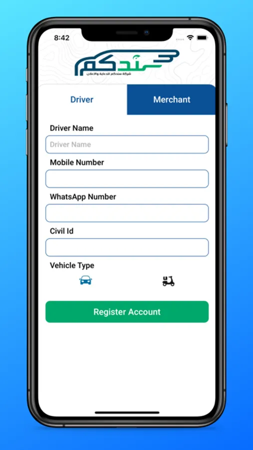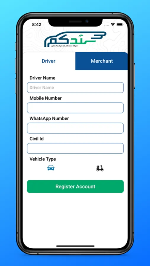 Register with Merchant/Driver Account