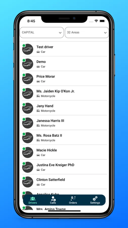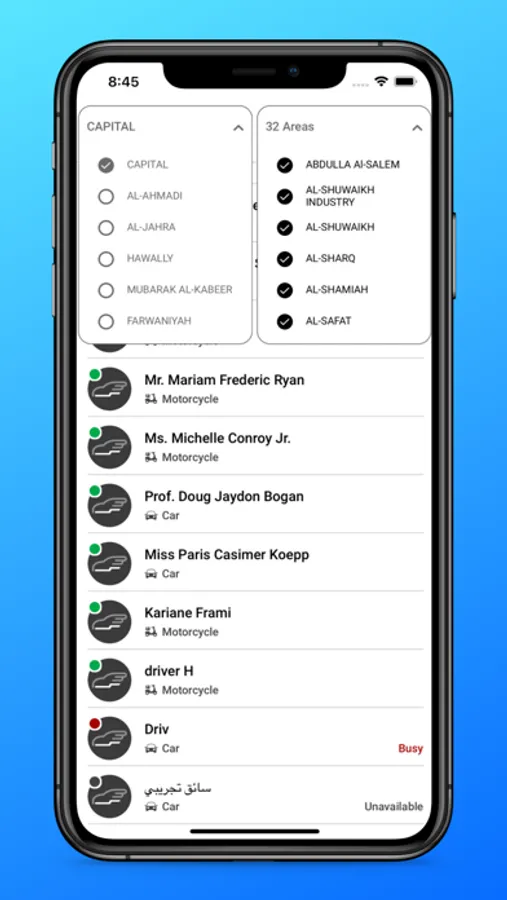 - Search for drivers in specific Area