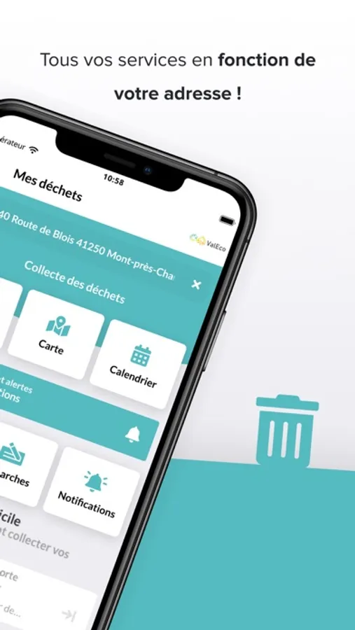 L’application délivre des informations en temps réel et personnalisées sur les modifications d’horaires ou fermetures de déchèteries, les reports de collectes à votre adresse, ou des mesures spéciales prises par ValEco.