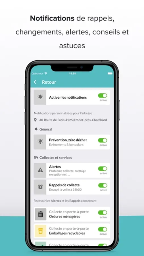 Recevez des notifications de rappel de sortie de vos bacs, de changements vous concernant mais également des conseils, trucs et astuces pour réduire vos déchets !