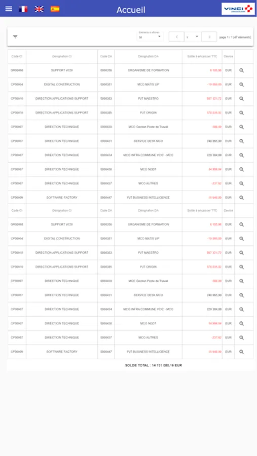 Cette application permet de consulter les éléments de ses chantiers selon différents critères. Des notifications permettent d'être alerté quotidiennement de la situation.