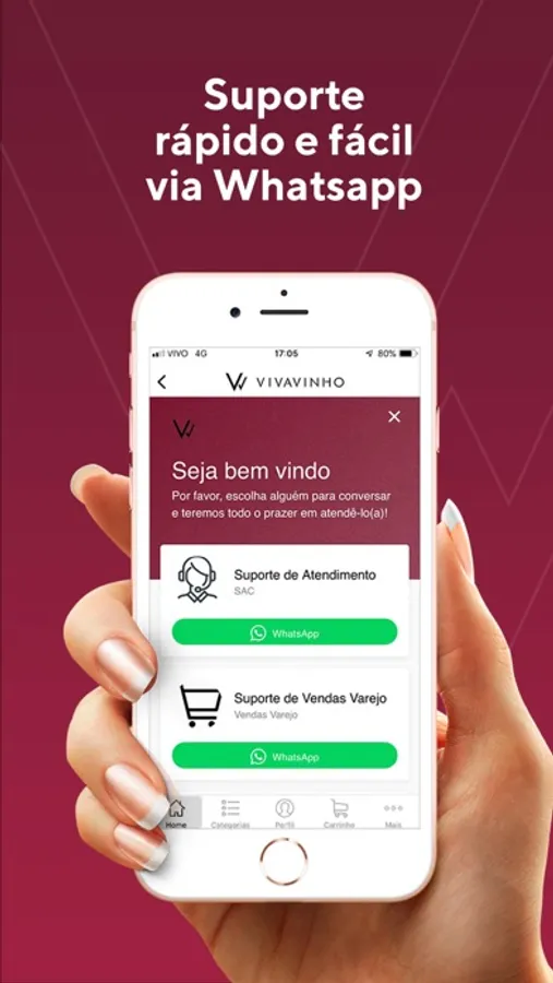 Baixe agora nosso App e tenha rótulos premiados do mundo todo a um clique do conforto da sua casa! São diversas Promoções, Kits, Premiados e muitos outros. Tintos, Brancos, Rosés, Espumantes e Fortificados. Frutados, Aveludados, Intensos, Sedosos, Ricos, Frescos, Nectars e Borbulhantes! Da Argentina a Portugal; Do Chile a Espanha; De Bordeaux a Ribera Del Duero; Do Vale do Maipo ao McLaren Vallen; Tudo você encontra no aplicativo Vivavinho de forma fácil e descomplicada. Além disso temos ofertas e descontos exclusivos, atendimento via WhatsApp e muito mais!