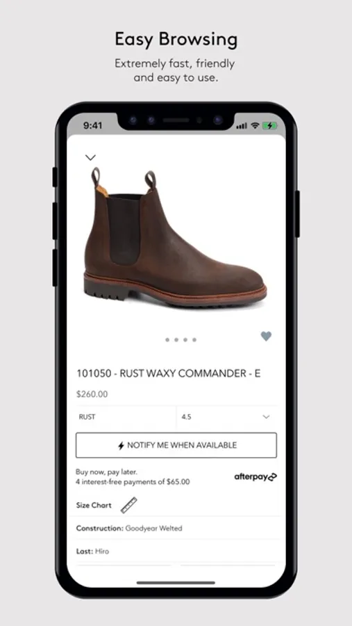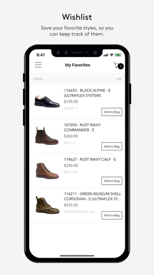 Save your favorite styles, so you can keep track of them. Be notified if they ever go on sale and restock notifications.