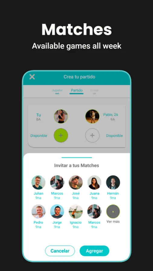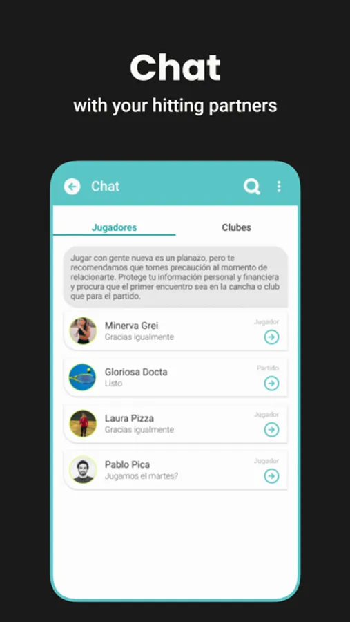 Our goal is to bring together tennis and padel players of similar levels to organize matches, find partners, and locate courts and sports clubs in their area.