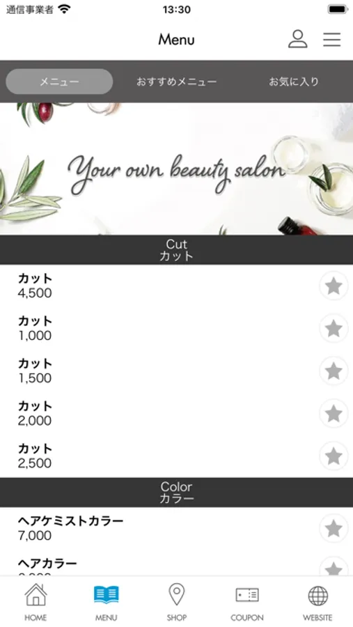 気になるサロンメニューや価格を、アプリから簡単にご確認いただけます。