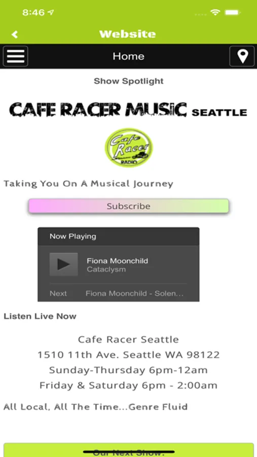 The Cafe Racer Radio app allows you to listen 24/7 to all local (Washington State) music all the time, easily access our website and exclusive app user coupons and content.