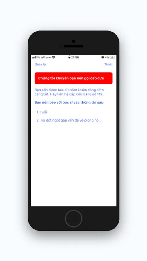 CẢNH BÁO: Ứng dụng này không thay thế cho bác sĩ. Nếu bạn cảm thấy mình có một vấn đề nghiêm trọng, hãy liên hệ 119 (tại Nhật) hoặc số điện thoại cấp cứu tại địa phương.