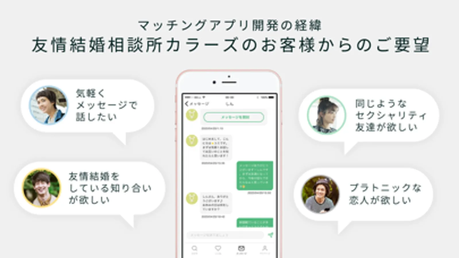 そこで、友情結婚と結婚相談所のノウハウがあるカラーズがアプリを制作しました!