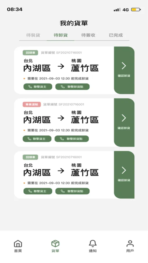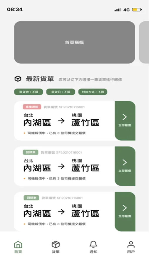 車多多司機版主要應用於司機對於訂單的管理,可以透過篩選條件選取適合自己的訂單,在訂單處理過程中有二次補價的申請機制,有問題也有爭議調解的機制,待裝貨、待卸貨的訂單列表一目了然,還有車輛管理、留言板、評價的功能。