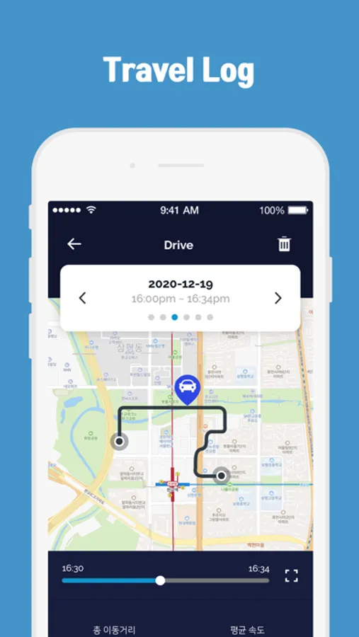 일자별 이동거리, 이벤트 발생 횟수, 총 녹화시간, 운전중 속도 등 블랙박스에서 기록된 정보를 시각화하여 제공합니다.