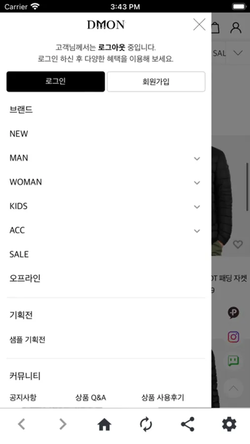 본 APP은 웹사이트 쇼핑몰과 100% 연동되어 있어