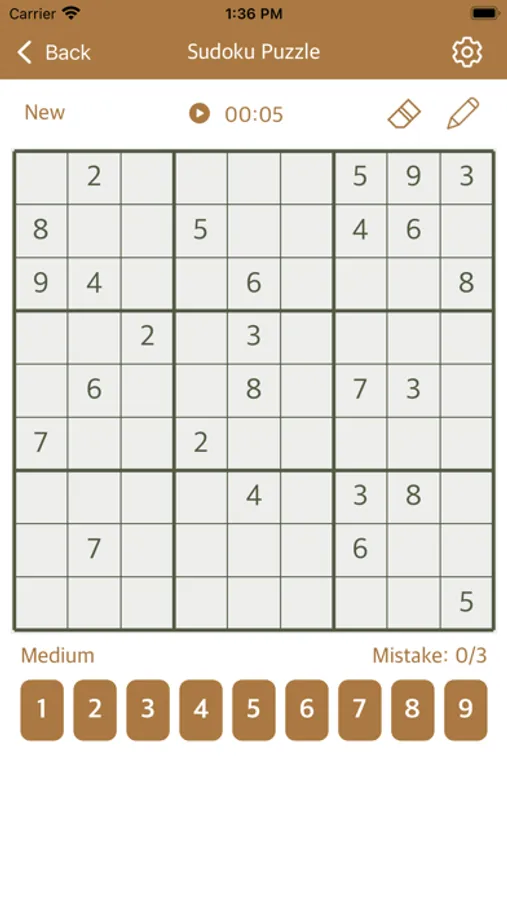 Sudoku (originally called Number Place) is a logic-based, combinatorial number-placement puzzle. The objective is to fill a 9x9 grid with digits so that each column, each row, and each of the nine 3x3 sub-grids that compose the grid contains all of the digits from 1 to 9.