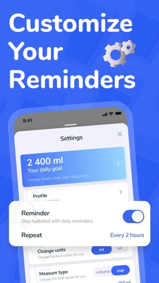• Set your custom daily hydration goal