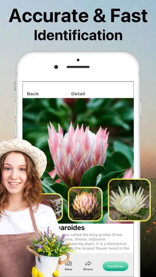 Take a picture with iPhone camera, or pick a photo from your library, then our artificial intelligence to identify the plant in the picture. It's convenient, quickly and accurately.
