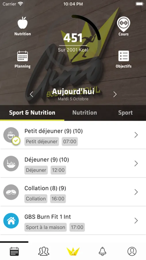 Sur celui-ci vous retrouverez la planification de vos repas et séances créés en amont par votre coach, en réponse à vos objectifs.