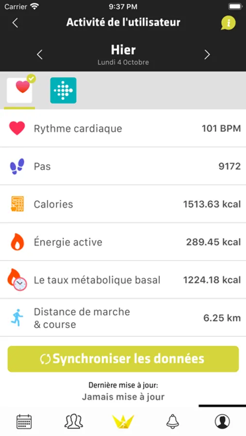 Notre application a la capacité de se synchroniser avec Santé "HealthKit" pour afficher les données de santé du jour dans l’écran d’activité de l’utilisateur.