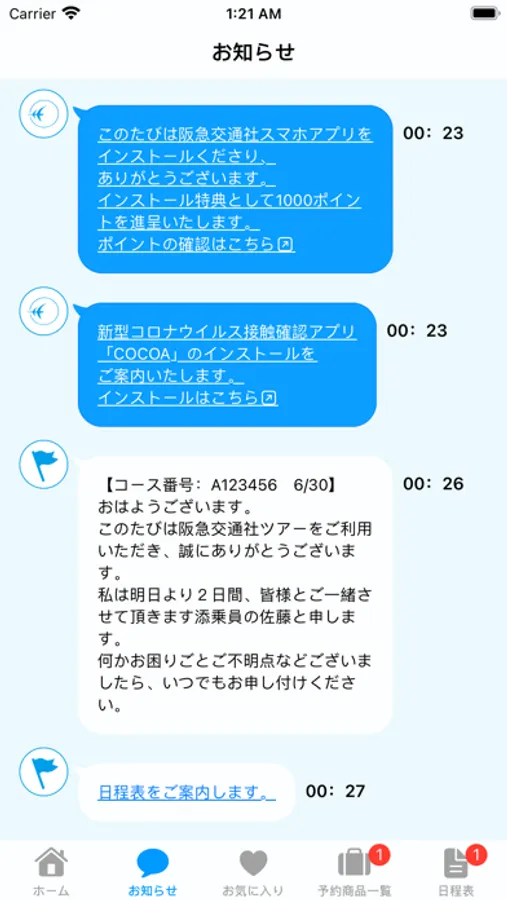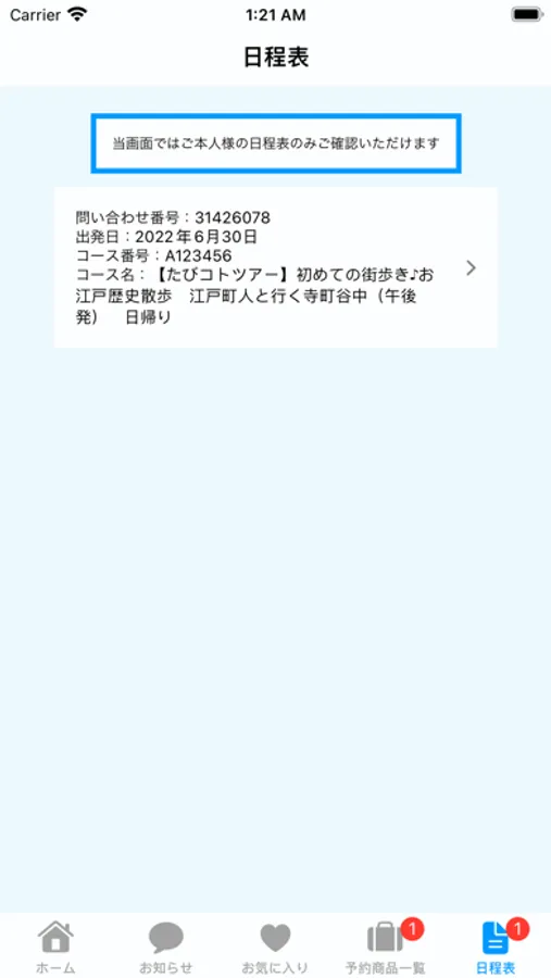 ご予約済みのツアーの最終日程表ができましたらこのアプリ上でお知らせいたします。