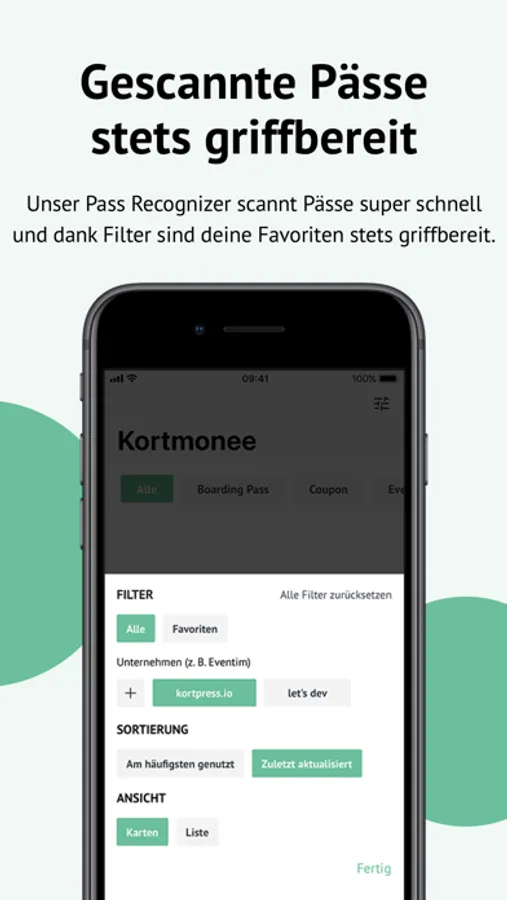 Kortmonee bündelt all deine Mitglieds- und Fahrkarten, Coupons, Tickets an einem Ort, sodass du sie immer zu Hand hast. An der Kasse hektisch nach der Kundenkarte zu suchen kannst du dir dann sparen. Stattdessen sind deine Passes stets gut sortiert und dein Geldbeutel angenehm aufgräumt. Ob du bestehende Karten importieren oder Neue hinzufügen möchtest, der integrierte Pass Recognizer erleichtert dir die Arbeit.