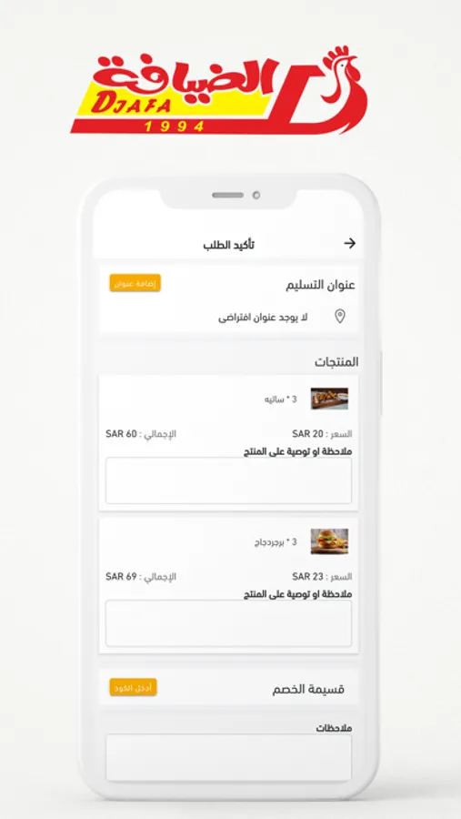 • إضافة تعليماتك الخاصة على جميع الأصناف في طلبك.