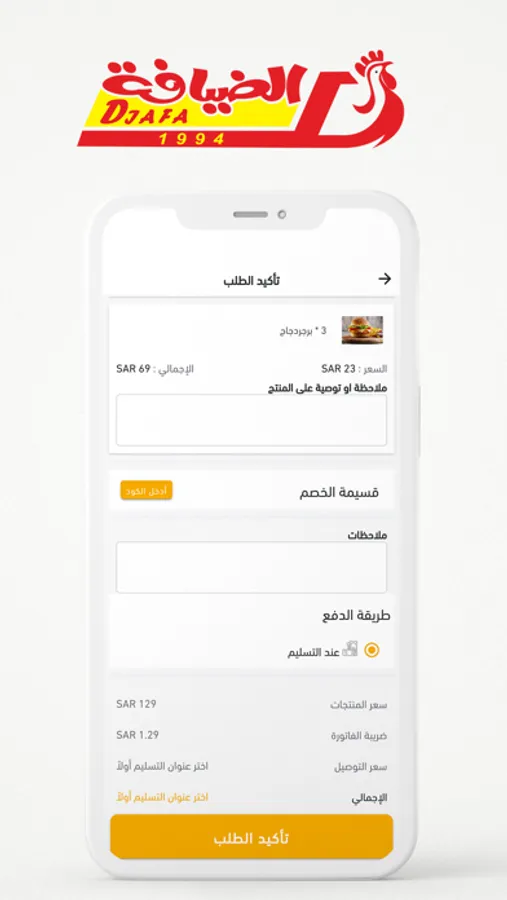 • الدفع نقداً عند توصيل الطلب.