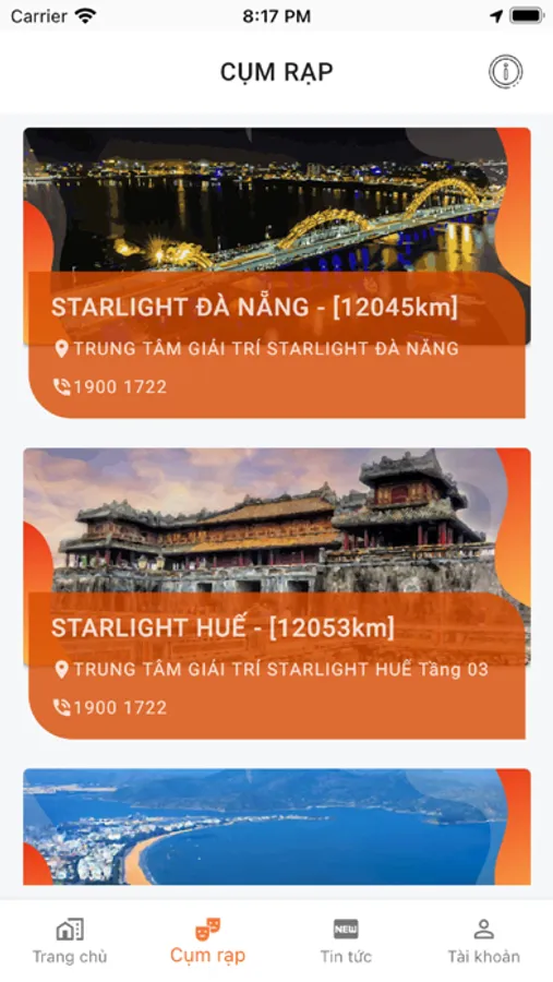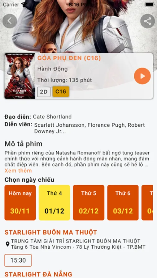 Ứng dụng của hệ thống rạp chiếu phim Starlight Cinemas
