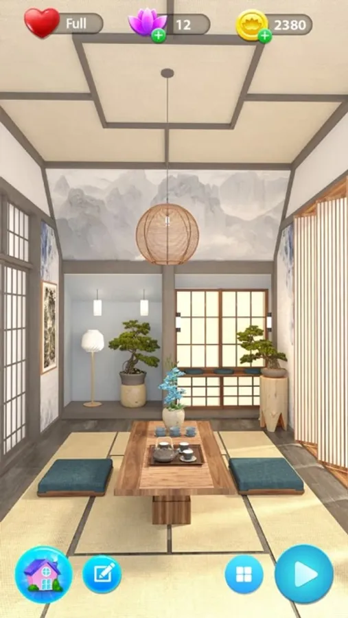 Relax your mind in a zen game with solitaire game play, surrounded by a calm atmosphere, and use your creativity to design the perfect zen room.