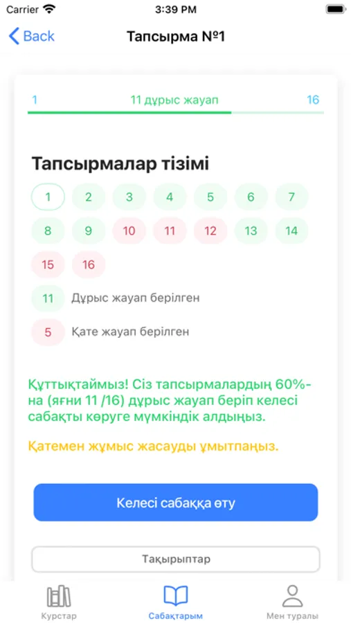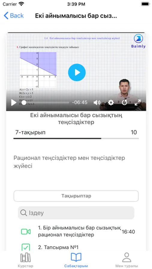 Әрбір сабаққа тапсырма және олардың әрқайсысының талдау бейнежазбасы бар.