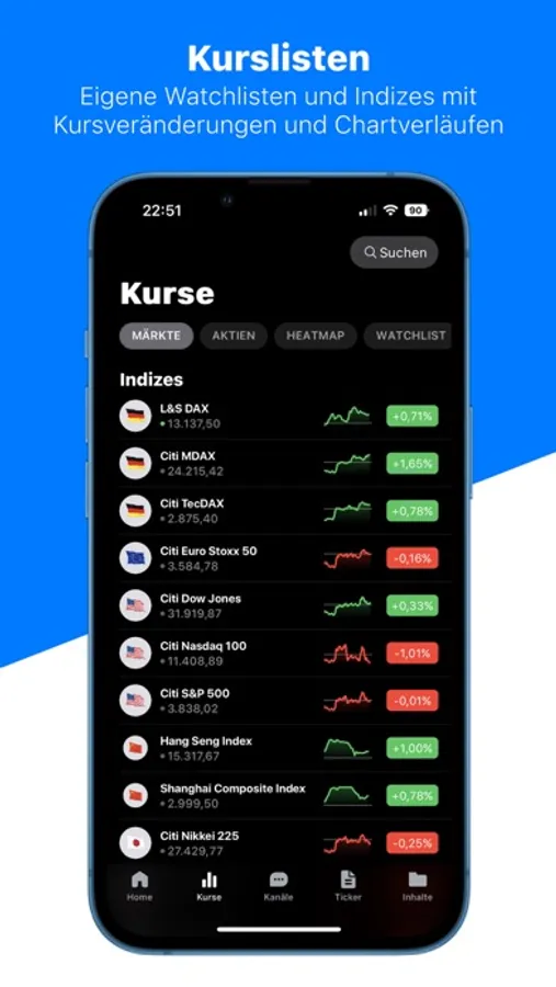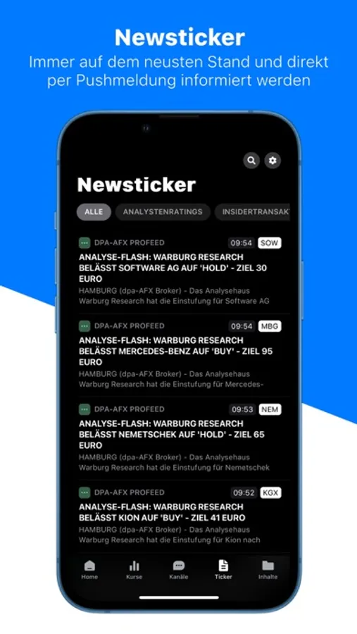 The best possible conditions for sustainable success on the stock market - with the Goldesel app you are always informed about what's happening on the trading floor. Get breaking news about your stocks, market commentaries, upgrades and downgrades, company results and much more.